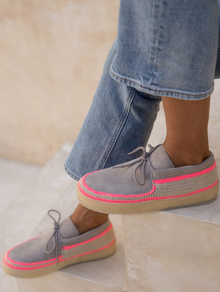 Komo Crochet Moccasin Fossil Neon Pink