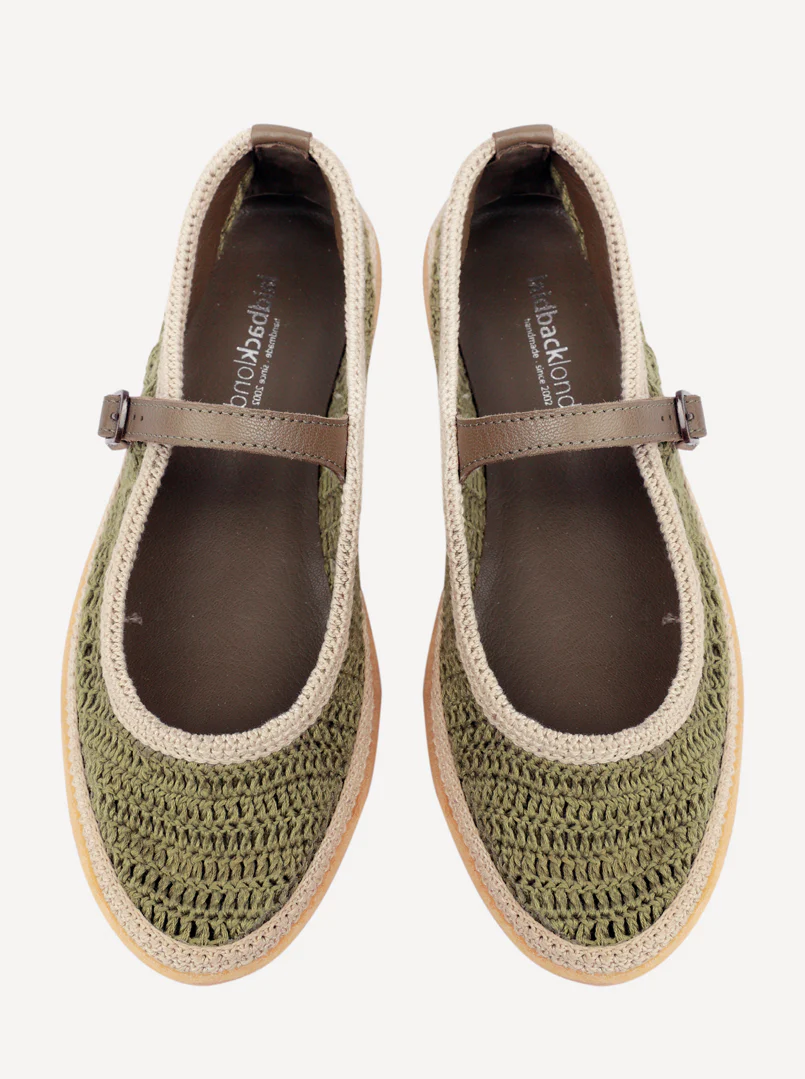 Loom Hand-Crocheted Mary Jane Flats Khaki Natural