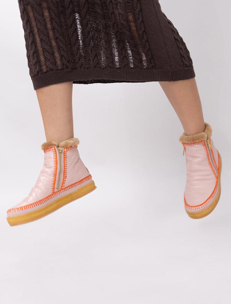 Setsu Crochet Ankle Boot Misty Rose Leather Orange